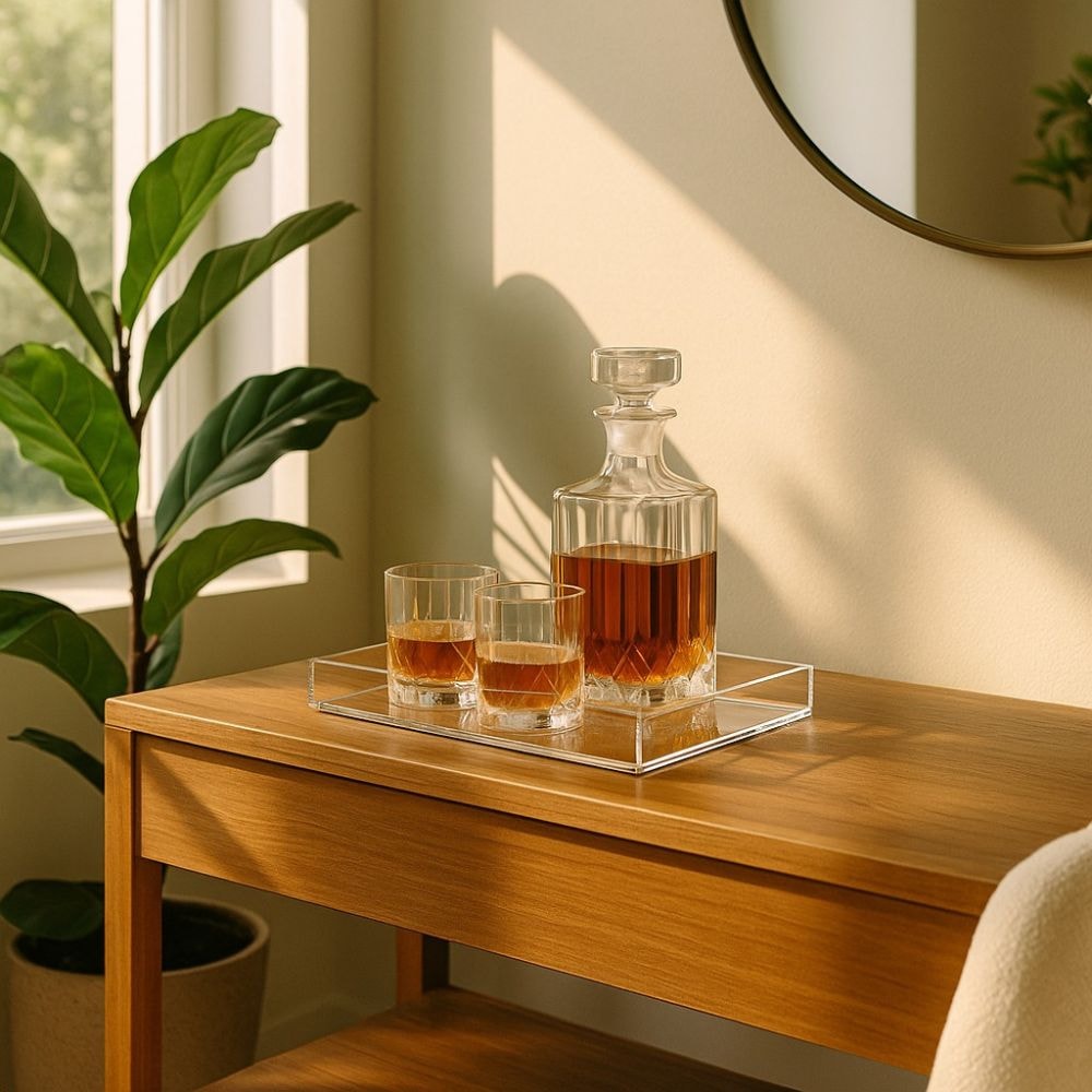 As bandejas de acrílico são peças versáteis, combinam com todos os ambientes. Além de decorar o ambiente, ajuda na organização de produtos de beleza, doces e bebidas. Fabricada em acrílico transparente de alta qualidade.