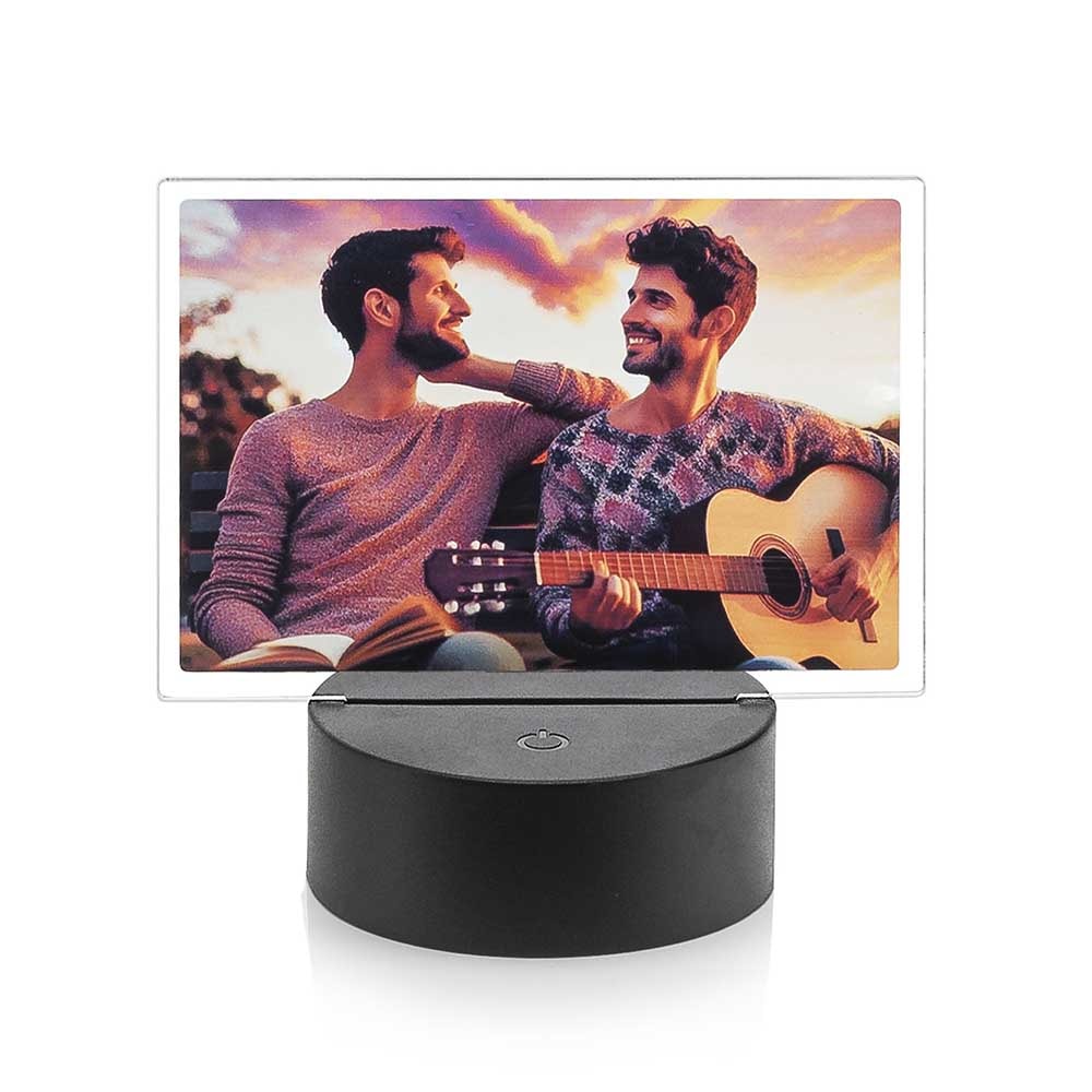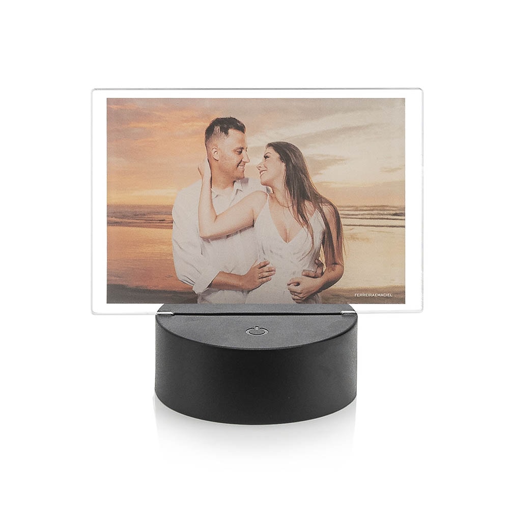 Luminária com impressão digital ideal para expor belas fotos em família, casal, viagens ou com os amigos. Possui uma base de led com 16 cores, um controle remoto e um cabo USB. Produto personalizado, após a compra nos envie a foto desejada.