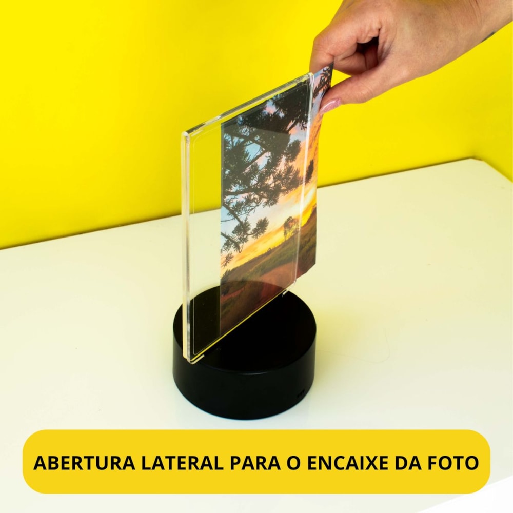 A Luminária de LED para foto veio para iluminar as suas memorias mais felizes, seu porta retrato é para o tamanho de foto 10x15, sua base de LED é preta e possui um controle operacional. Alimentado por 3 Pilhas tipo AA (não inclusa) ou via cabo USB (acompanha a peça) e uma entrada fonte Bivolt