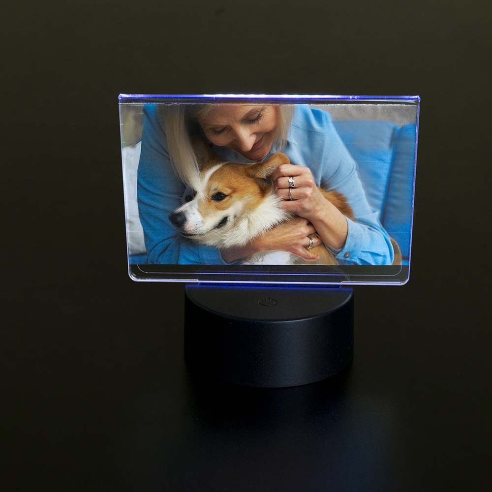 A luminária possui a parte do porta retrato removível sendo fabricada em acrílico transparente de alta qualidade com traço a laser para fazer o formato, sua base é de luz de Led. Ideal para decorara ambientes e ao mesmo tempo guardar memorias, ótimo para presentear amigos e família.