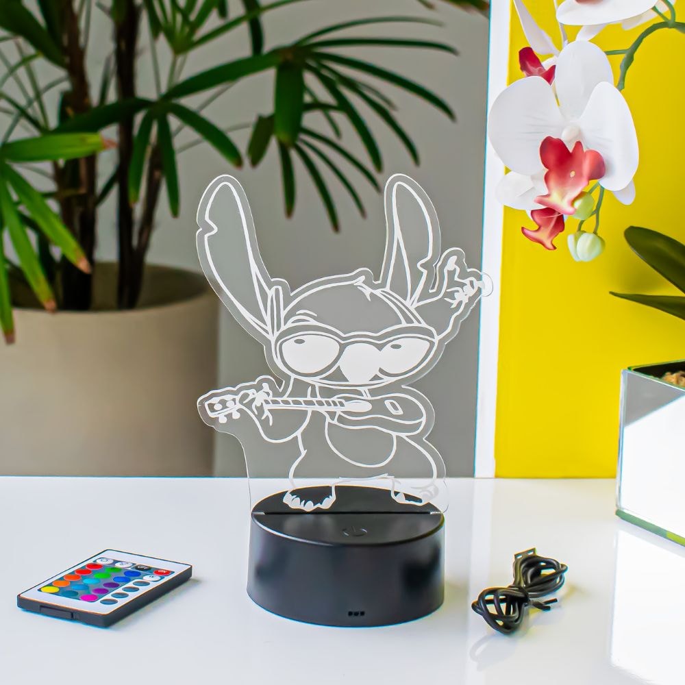 Transforme qualquer ambiente com a Luminária de Led Stitch e Ukulele, uma peça cheia de personalidade e estilo!
