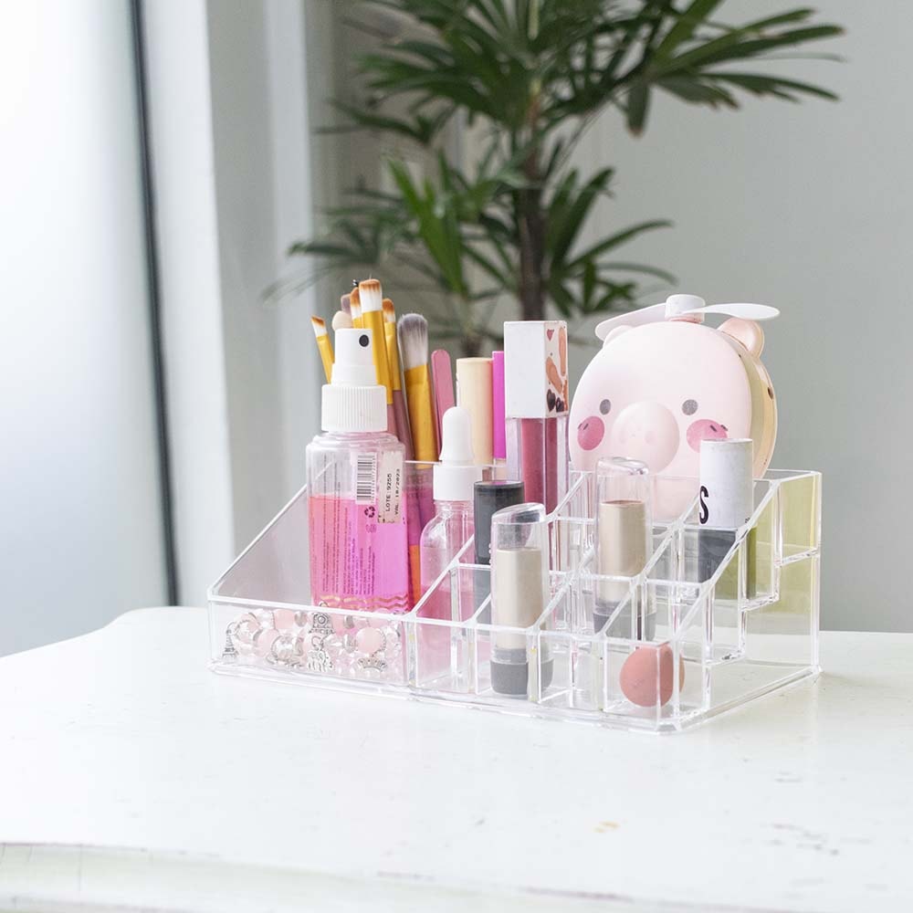 Pensado para quem ama cuidar dos seus produtos com carinho, este organizador em acrílico une beleza e praticidade. Com 4 gavetas amplas e uma bandeja para seus batons favoritos, ele deixa tudo no lugar certo – do jeitinho que você gosta. Ideal para trazer mais leveza e organização à sua rotina de beleza.