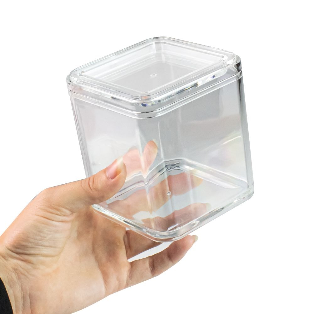 Organizador em acrílico transparente com tampa, ideal para guardar algodão, cotonete, produtos de maquiagem e acessórios. Possui tampa com sistema de encaixe, acrílico com ótima qualidade e resistente. Seu design moderno e clean ajuda a decorar e organizar seu espaço.
