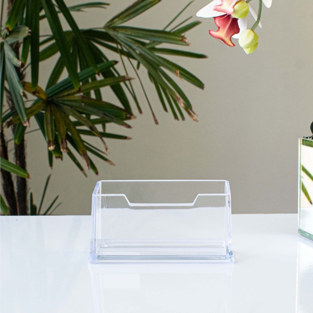 Fabricado em acrílico cristal de alta qualidade, nosso porta cartão é ideal para seu escritório, consultório, loja ou cafeteria. Seu material transparente facilita a visualização interna, com design minimalista combina com qualquer decoração. Armazene seus cartões de visita em nosso porta cartão cristal.