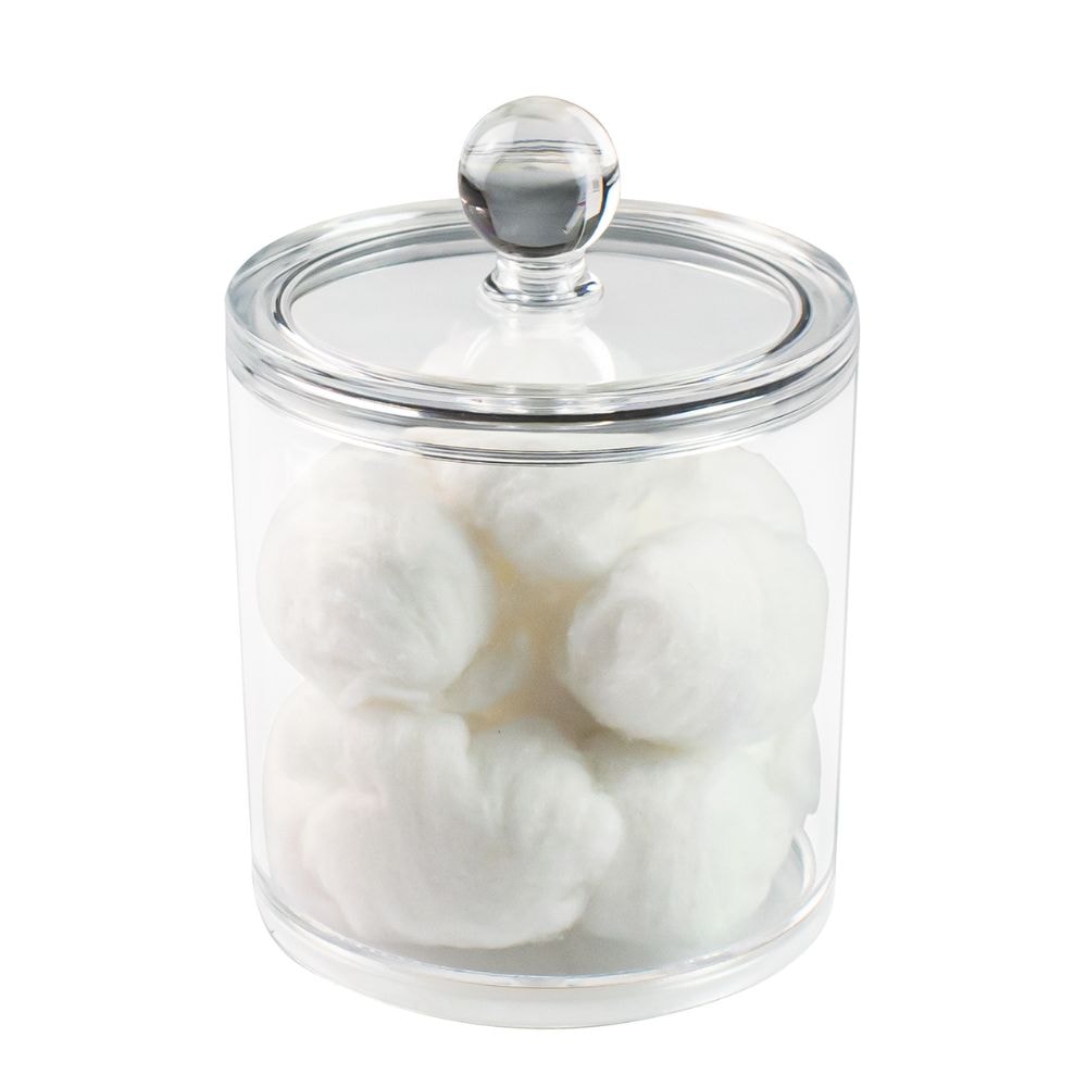 O organizador redondo em acrílico com tampa é ideal para guardar cotonetes, algodão e itens menores. Uma peça versátil que pode ser utilizada em penteadeiras, bancadas de banheiro ou armários. Acrílico resistente e com ótimo acabamento e qualidade.