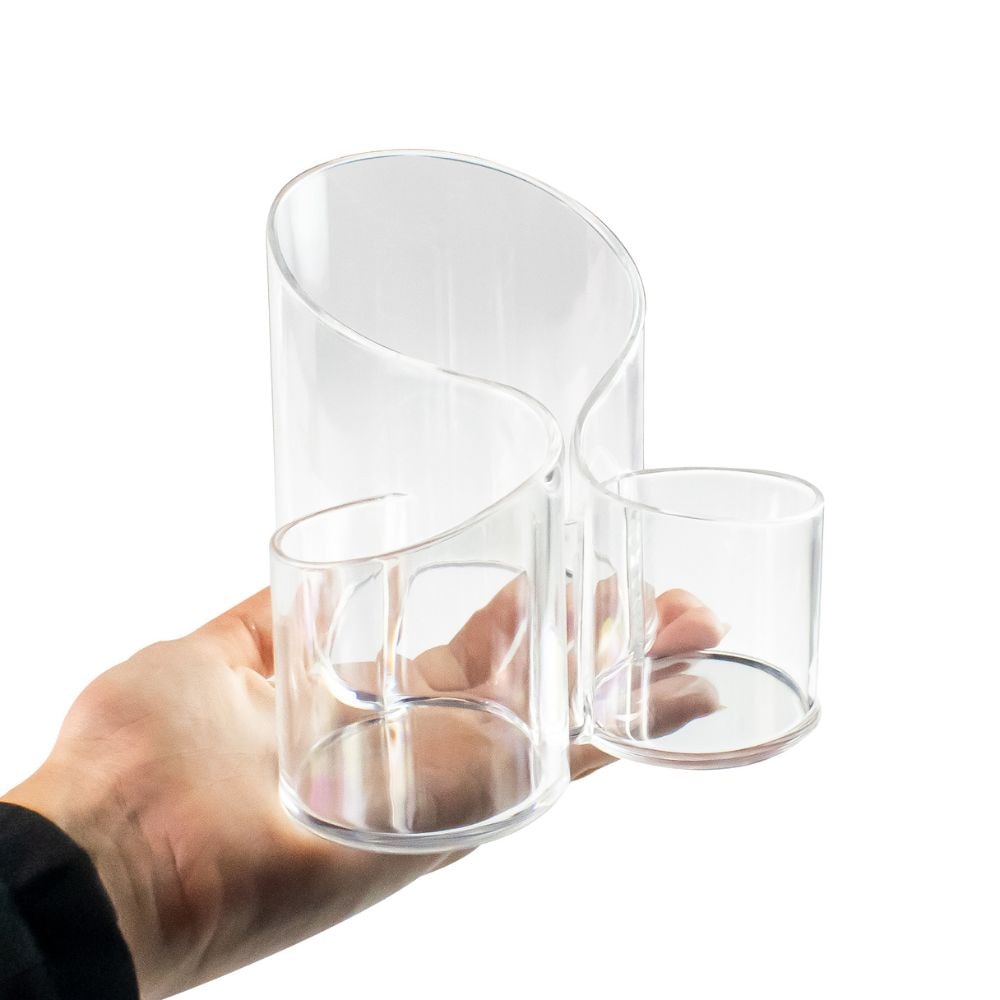 O modelo de porta pincel com 3 divisórias é um organizador ideal para pincéis de maquiagem, lápis, rímel entre outros produtos de maquiagem. Possui 3 espaços para guardar seus produtos e deixar sua bancada organizada. Fabricado em acrílico transparente, nosso modelo de porta pincel combina com todos os ambientes.