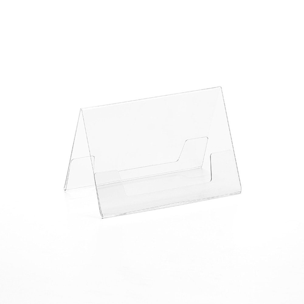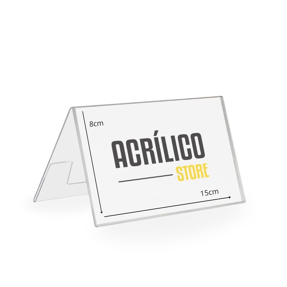 Display prisma de mesa com visualização em ambos os lados. Fabricado em acrílico cristal com o tamanho de 15cm largura x 8cm altura. Material de alta resistência e acabamento. Perfeito para identificar mesas ou sinalizar avisos.